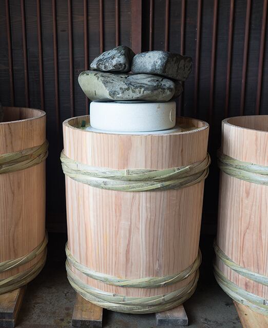 約1ヶ月の発酵期間を経て、桶から出して天日干しで乾燥させて仕上げます。